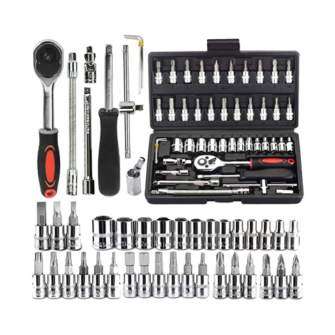 46 Stück hochwertige Cr-v Chrom Finish Sockel Werkzeugs atz Steckschlüssel Reparatur satz Ratschen schlüssel Steckschlüssels atz